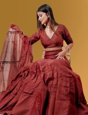 A trendy and a modern twist to this Kalidar Skirt pairing it with a hand embroidered crop top.